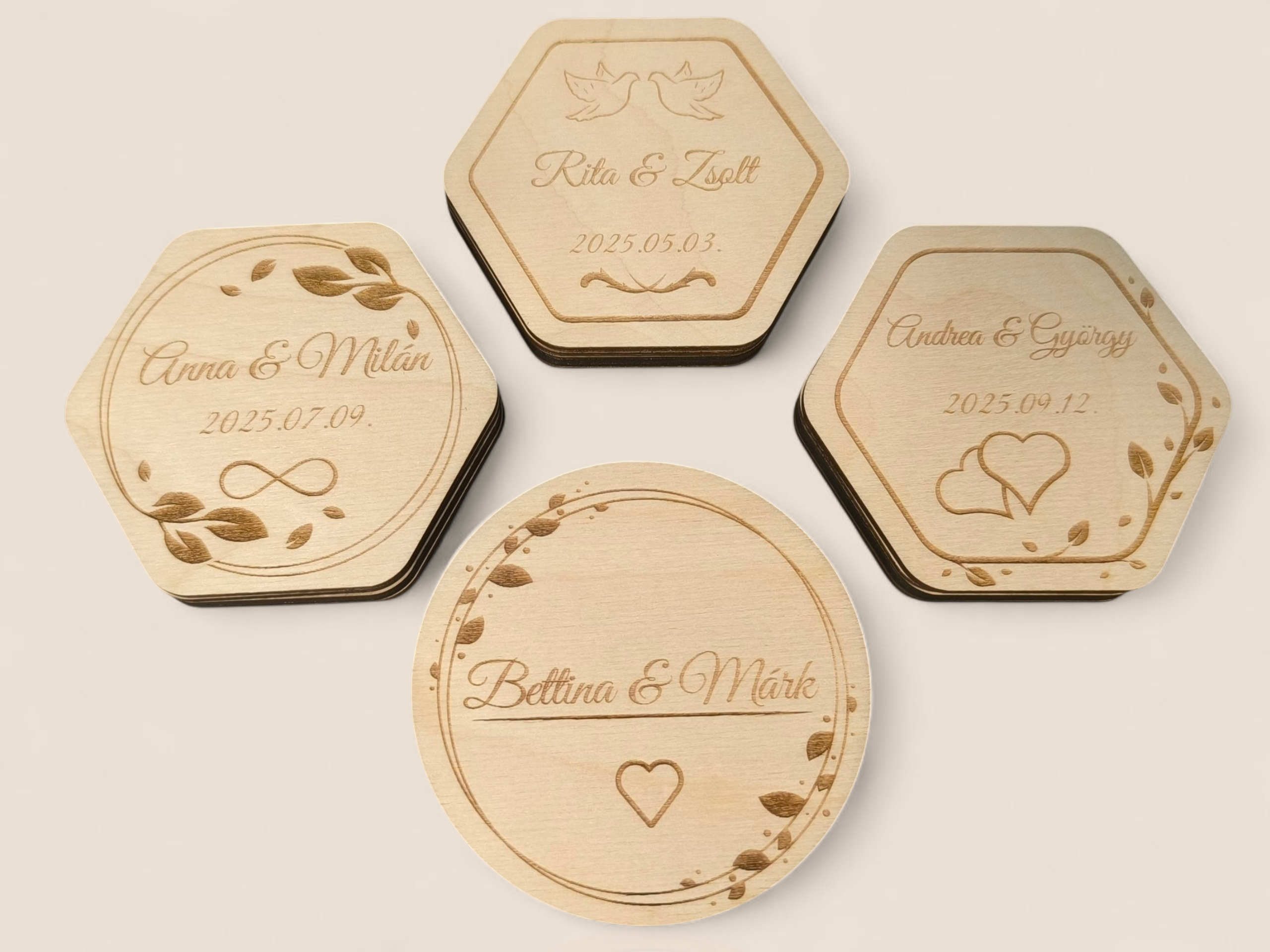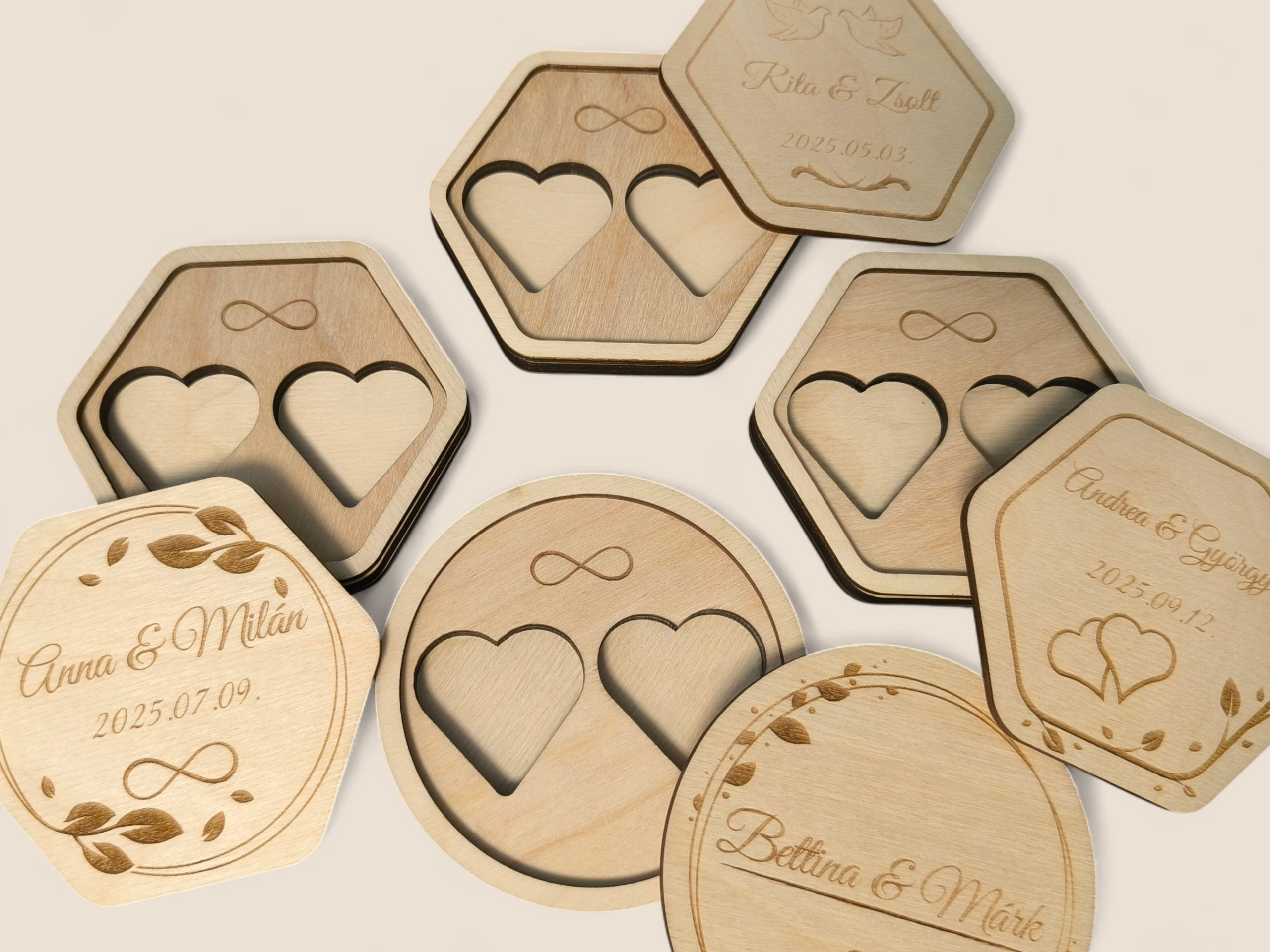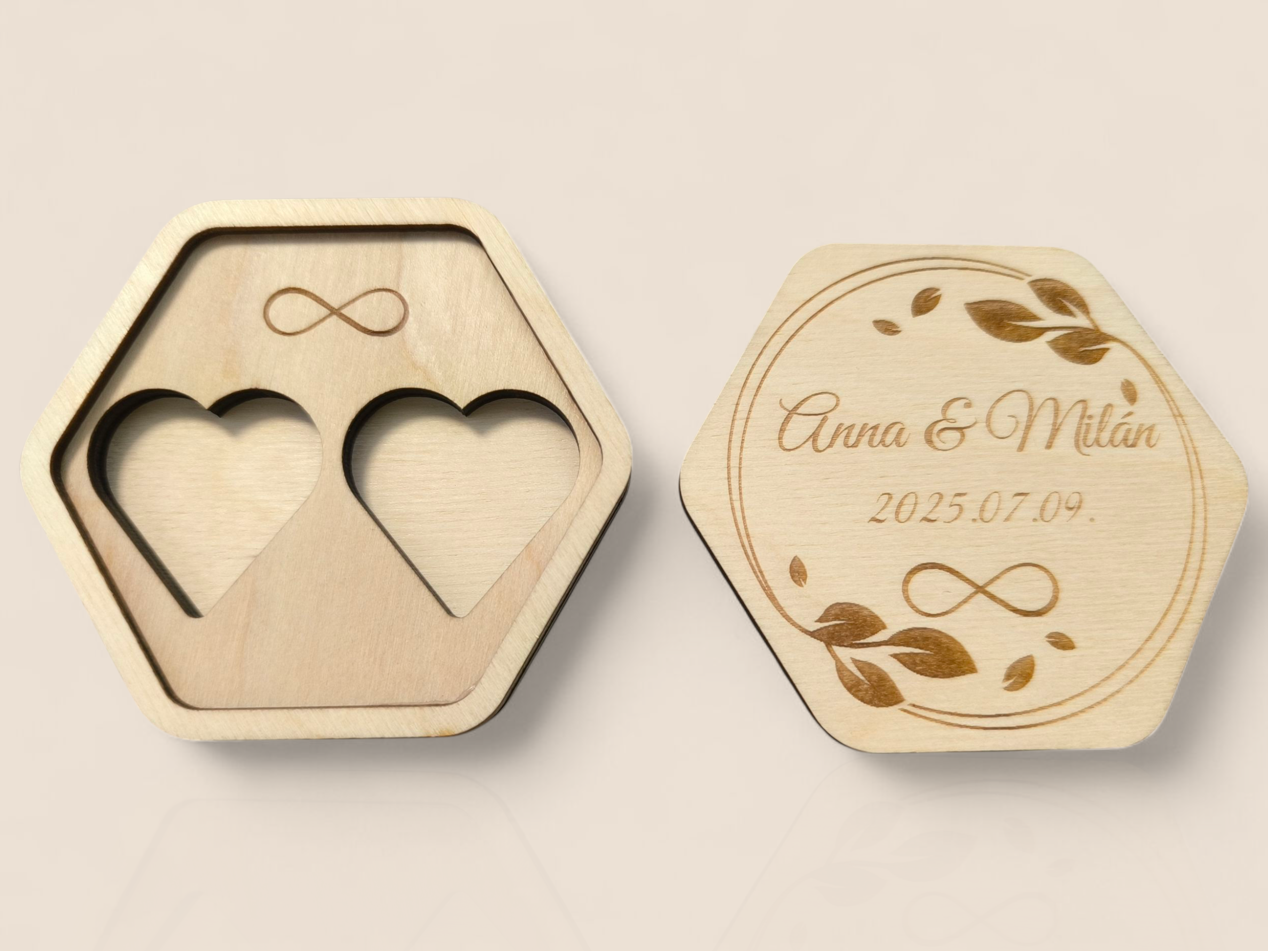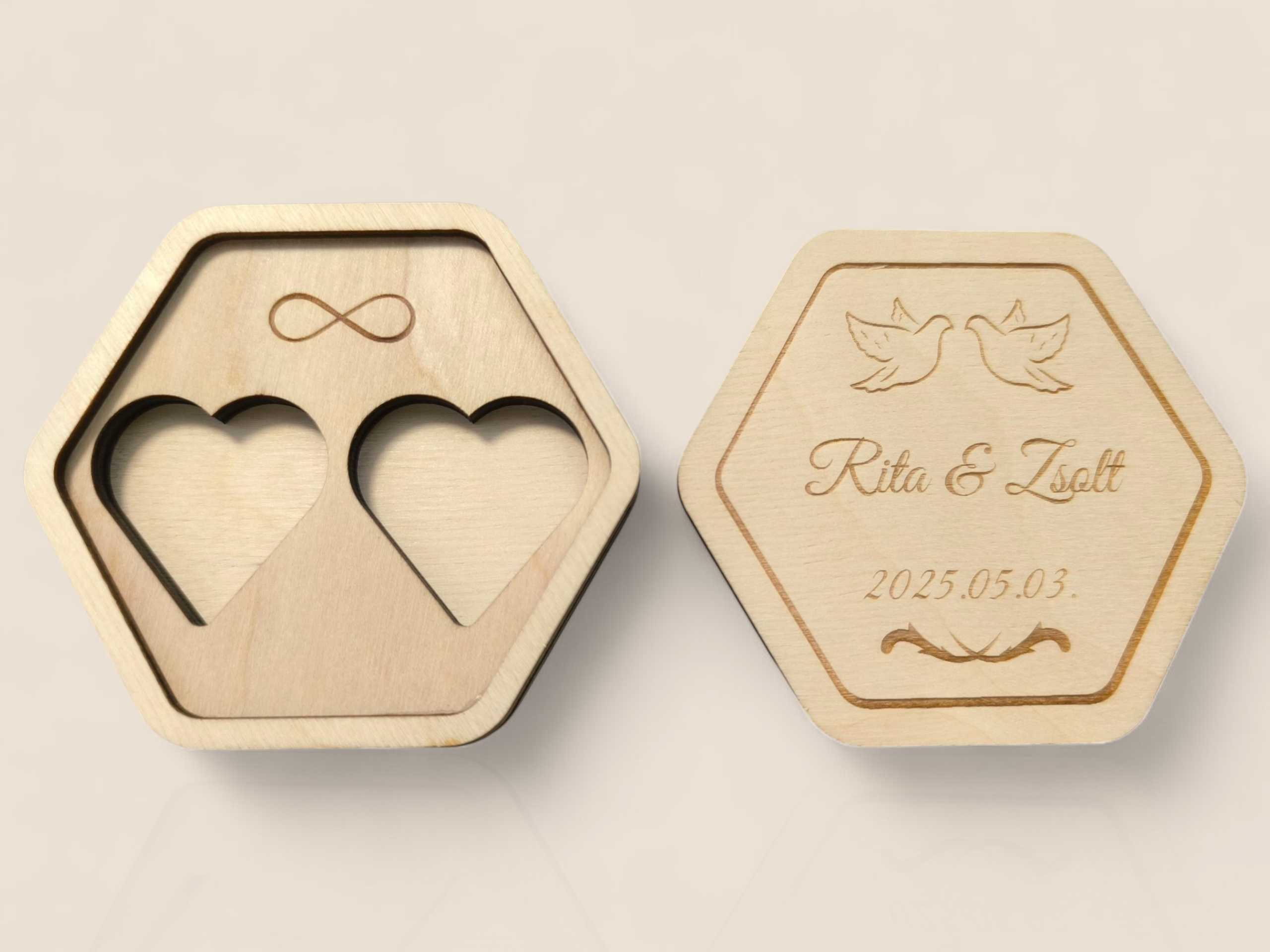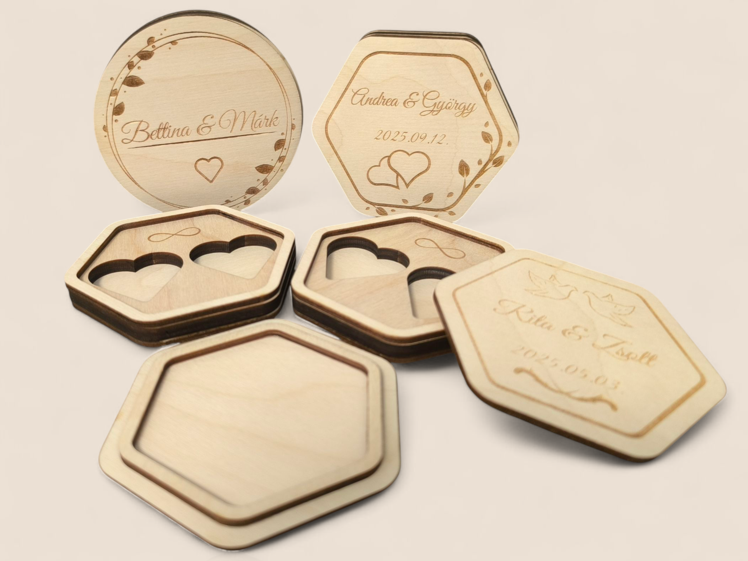 • Gravírozás: egyedi nevek és dátum a tetején