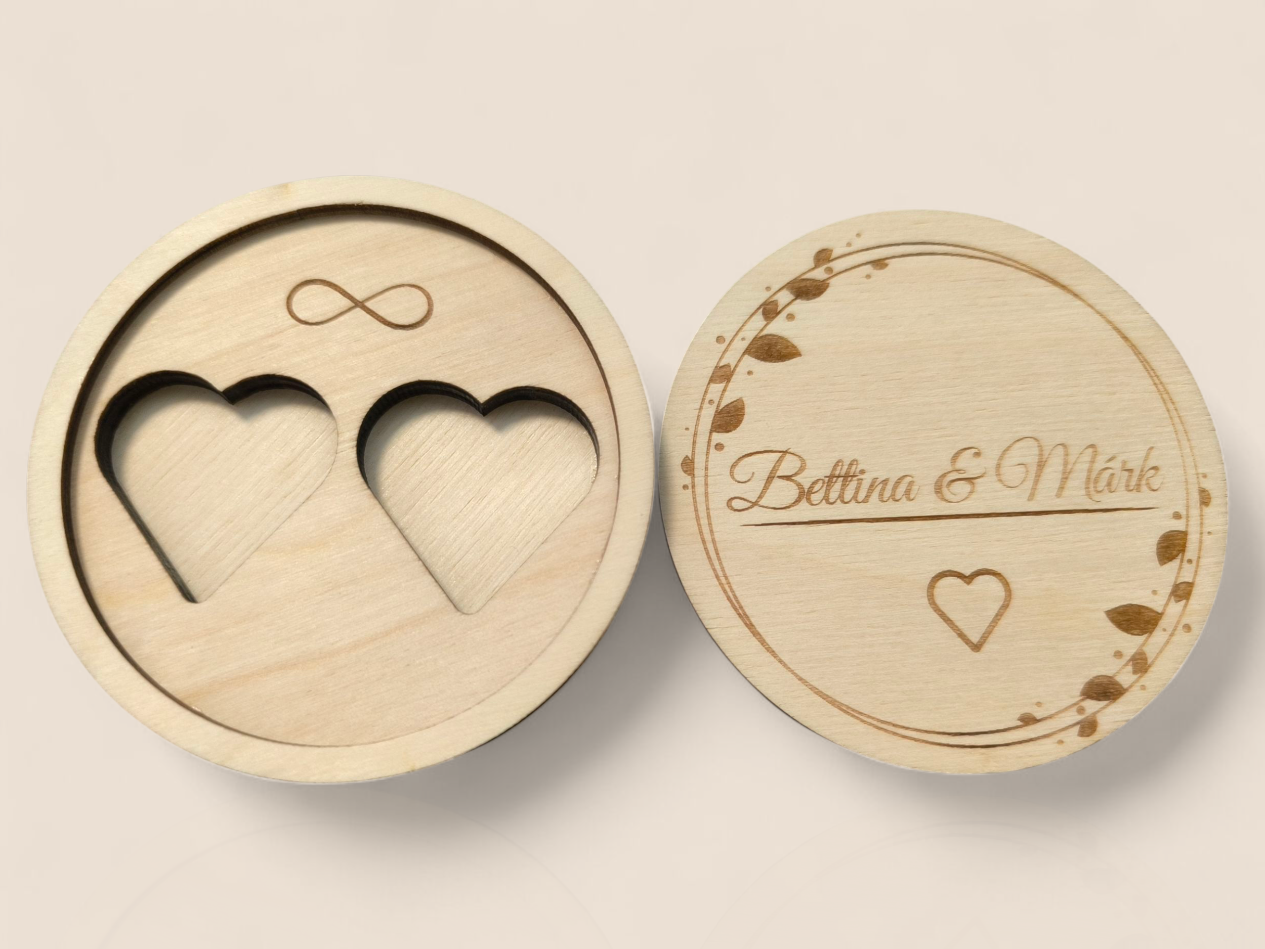 Személyre szabott gyűrűtartó doboz – gravírozott neves, dátumos